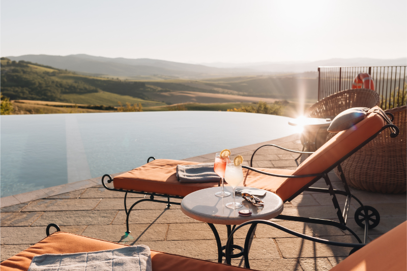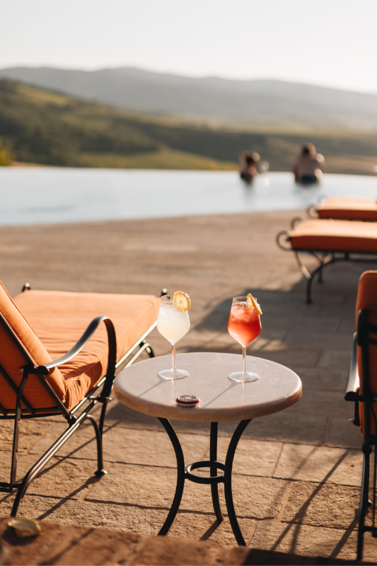 Poolside aperitifs and receptions at sunset