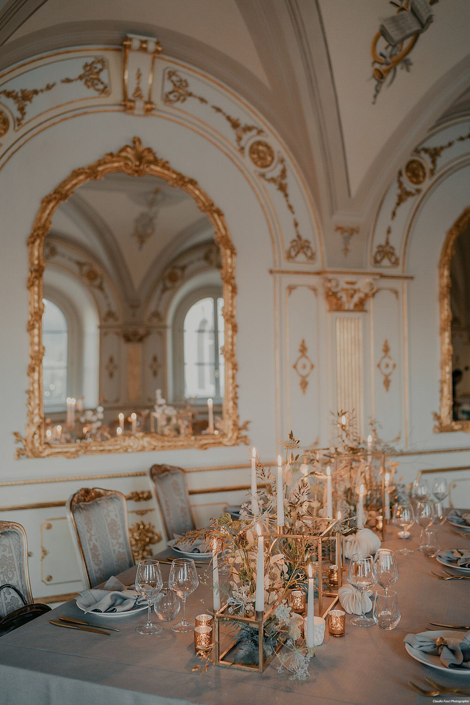 We would be very pleased to organize your wedding dinner in our new elegant Events Room, a beautiful hall with Renaissance mirrors, vaulted ceilings and triple d’oeil, gilded boiserie elegantly inlaid by hand, ancient oak floors.. Located on the second floor of the Villa, in front of our pool, with a beautiful view of the hills surrounding the Relais.